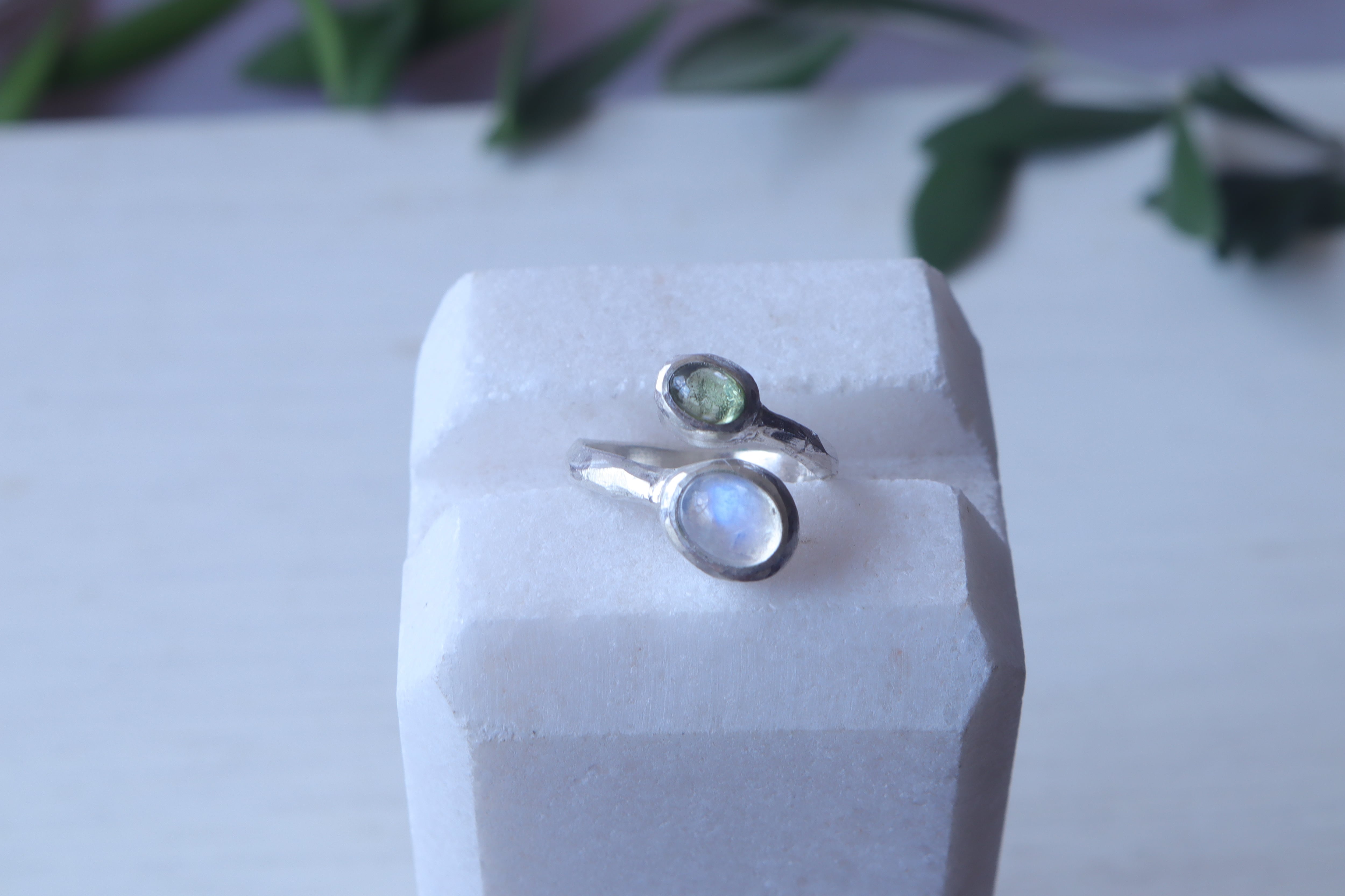 「ペリドット」と「ブルームーンストーン」を使ったシルバーリング。